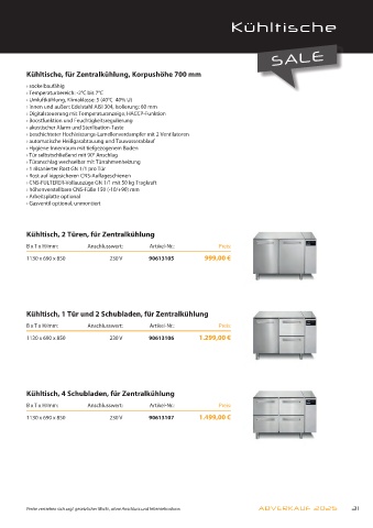Kühltische, für Zentralkühlung, Korpushöhe 700 mm