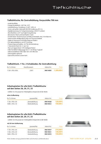 Arbeitsplatten für alle Kühl-/Tiefkühltische