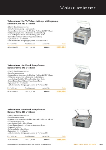Vakuumierer 21 m³/h mit Dampfsensor,