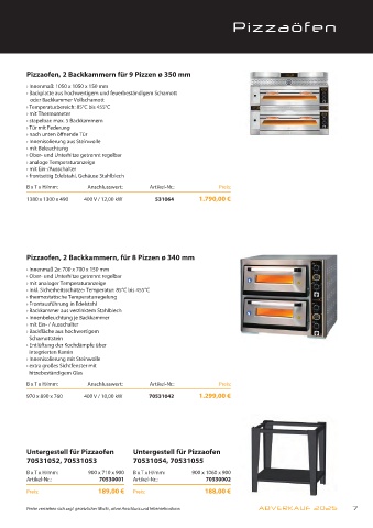Pizzaofen, 2 Backkammern für 9 Pizzen ø 350 mm