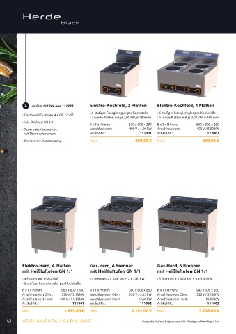 i Artikel 111002 und 111003 Elektro-Kochfeld, 2 Platten Elektro-Kochfeld, 4 Platten