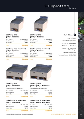 Gasgeräte sind auf Erdgas eingestellt. Flüssiggas-Düsen liegen bei. KOCHGERÄTE | SERIE 600 115
