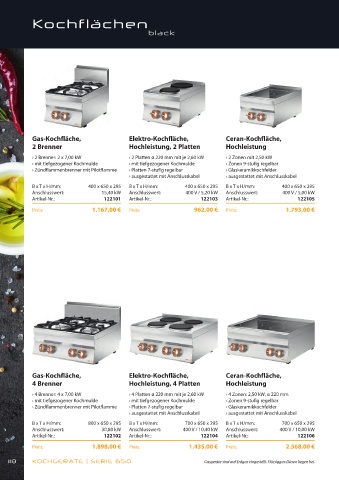 118 KOCHGERÄTE | SERIE 65O Gasgeräte sind auf Erdgas eingestellt. Flüssiggas-Düsen liegen bei.