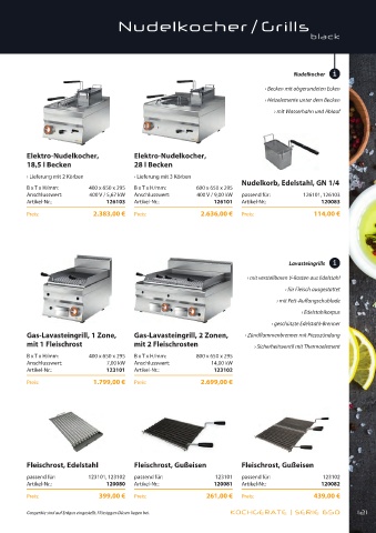 Gasgeräte sind auf Erdgas eingestellt. Flüssiggas-Düsen liegen bei. KOCHGERÄTE | SERIE 65O 121