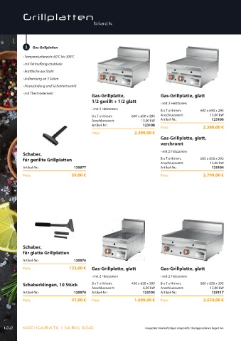 122 KOCHGERÄTE | SERIE 65O Gasgeräte sind auf Erdgas eingestellt. Flüssiggas-Düsen liegen bei.
