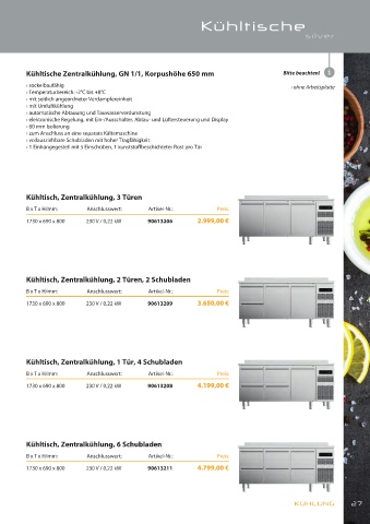 Kühltische Zentralkühlung, GN 1/1, Korpushöhe 650 mm                              Bitte beachten!  i