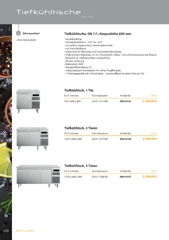 i   Bitte beachten!              Tiefkühltische, GN 1/1, Korpushöhe 650 mm