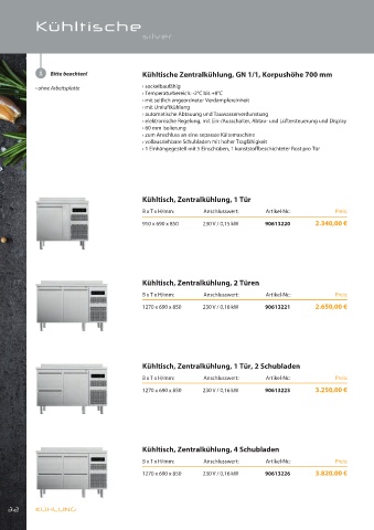 i   Bitte beachten!              Kühltische Zentralkühlung, GN 1/1, Korpushöhe 700 mm