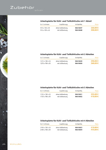 Arbeitsplatte für Kühl- und Tiefkühltische mit 2 Abteilen