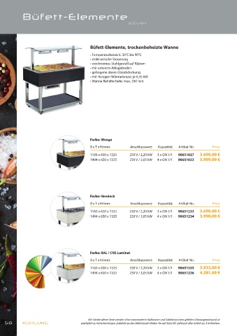 58 KÜHLUNG zusätzlich zu berücksichtigen. Zubehör zu den Büfettinseln finden Sie auf Seite 68. Lieferzeit aller Artikel ca. 3-4 Wochen.