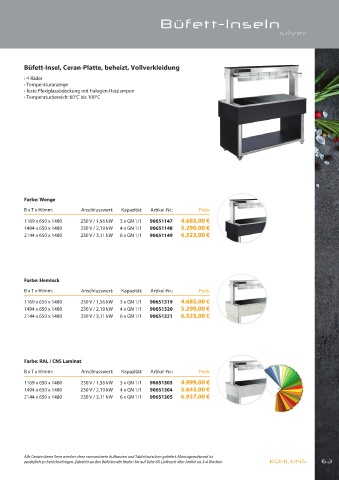 zusätzlich zu berücksichtigen. Zubehör zu den Büfettinseln finden Sie auf Seite 68. Lieferzeit aller Artikel ca. 3-4 Wochen. KÜHLUNG 63