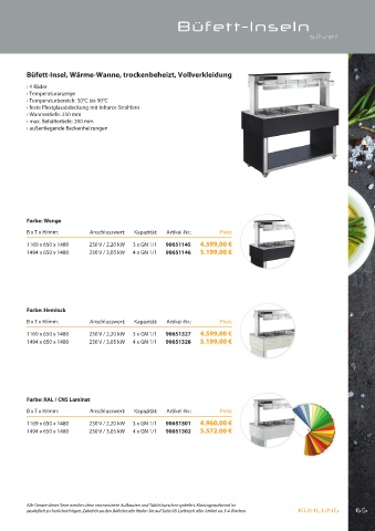zusätzlich zu berücksichtigen. Zubehör zu den Büfettinseln finden Sie auf Seite 68. Lieferzeit aller Artikel ca. 3-4 Wochen. KÜHLUNG 65