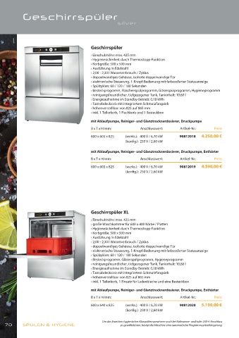 › Besteckprogramm, Gläserspülprogramm, Hygieneprogramm