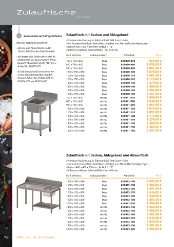 i Sondermaße auf Anfrage lieferbar Zulauftisch mit Becken und Ablagebord