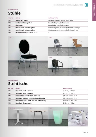 Hinsche GastroRent Produktkatalog / Gastro Möbel