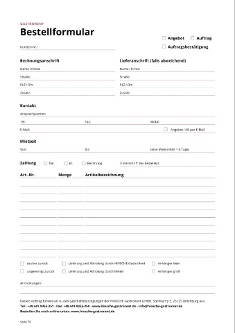 Diesen Auftrag führen wir zu den Geschäftsbedingungen der HINSCHE GastroRent GmbH, Steinkamp 5, 26125 Oldenburg aus.