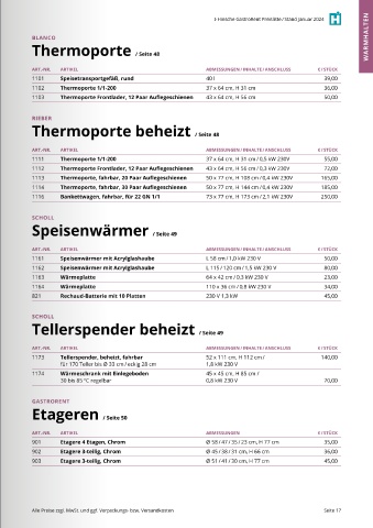 972 Chafing Dish, rund, Chrom 5 l, 230 V 0,5 kW 28,00 1103 Thermoporte Frontlader, 12 Paar Auflegeschienen 43 x 64 cm, H 56 cm 50,00