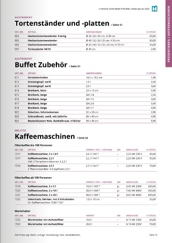 805 Standleuchter, 5-armig, versilbert H 80 cm 18,00 1521 Kaffeemaschine, 2 x 20 l 40,0 l / 580 T ja 9,65 kW 400V 400,00