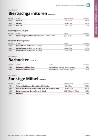 ART.-NR. ARTIKEL ABMESSUNGEN € / STÜCK ART.-NR. ARTIKEL ABMESSUNGEN € / STÜCK BARHOCKER / BIERTISCHGARNITUR