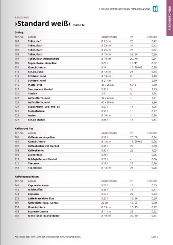 Hinsche GastroRent Preisliste / Stand Januar 2024