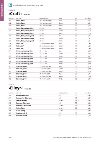 201 Teller, flach 15,5 cm ›Freestyle‹ Blue 30 0,67 ART.-NR. ARTIKEL ABMESSUNGEN VE € / STÜCK