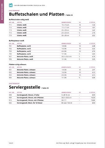BUFFETGESCHIRR GASTRORENT GASTRORENT Hinsche GastroRent Preisliste / Stand Januar 2024 BUFFETGESCHIRR
