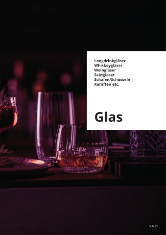 Longdrinkgläser Whiskeygläser Weingläser Sektgläser Schalen/Schüsseln Karaffen etc. Glas Seite 25