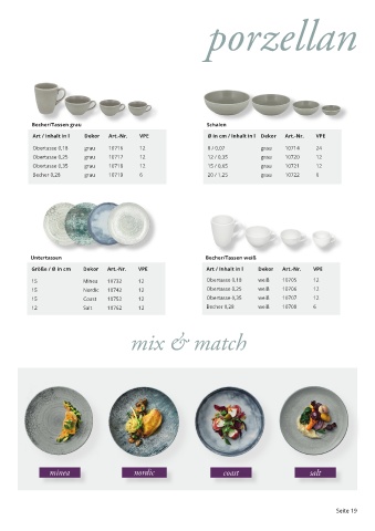 Größe / Ø in cm Dekor Art.-Nr. VPE Art / Inhalt in l Dekor Art.-Nr. VPE
