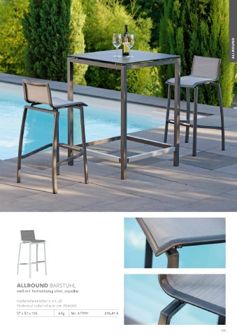 ALLROUND ALLROUND BARSTUHL weiß mit Textilenbezug silber, stapelbar Rückenlehnenhöhe in cm: 20 Sitzbreite/-tiefe/-höhe in cm: 39/40/80 57 x 52 x 100 4 kg No. 417991 276,47 € 185