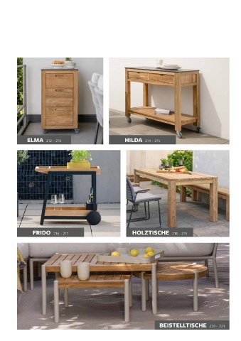ELMA 212 – 213 HILDA 214 – 215 FRIDO 216 – 217 HOLZTISCHE 218 – 219 BEISTELLTISCHE 220 – 221