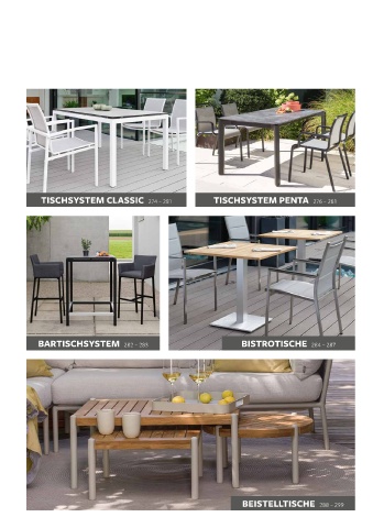 TISCHSYSTEM CLASSIC 274 – 281 TISCHSYSTEM PENTA 276 – 281 BARTISCHSYSTEM 282 – 283 BISTROTISCHE 284 – 287 BEISTELLTISCHE 288 – 299
