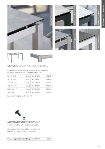 Edelstahl Vierkantrohr Aluminium schwarz matt Aluminium anthrazit TISCHGESTELLE CLASSIC