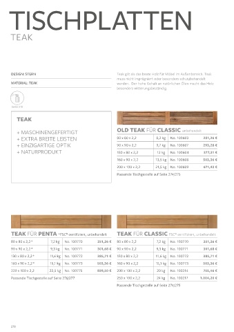 TEAK FÜR PENTA *FSC -zertifiziert, unbehandelt TEAK FÜR CLASSIC FSC -zertifiziert, unbehandelt
