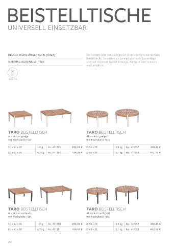 MATERIAL: ALUMINIUM – TEAK und sind mit einem Gestell in Greige, Anthrazit oder Schwarz