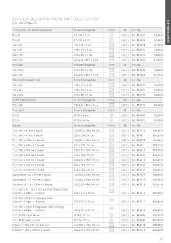 SELECT Ausziehtisch Schutzhüllengröße Form VE Art.-No.