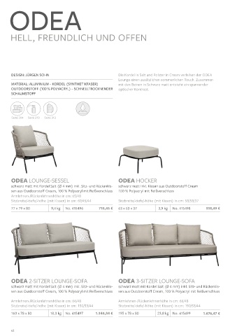 DESIGN: JÜRGEN SOHN Die Kordel in Salt und Polster in Cream verleihen der ODEA