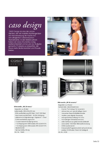 - Mikrowellenleistung 800 Watt / Grill 1000 Watt • innovativer Keramik-Reflektorboden